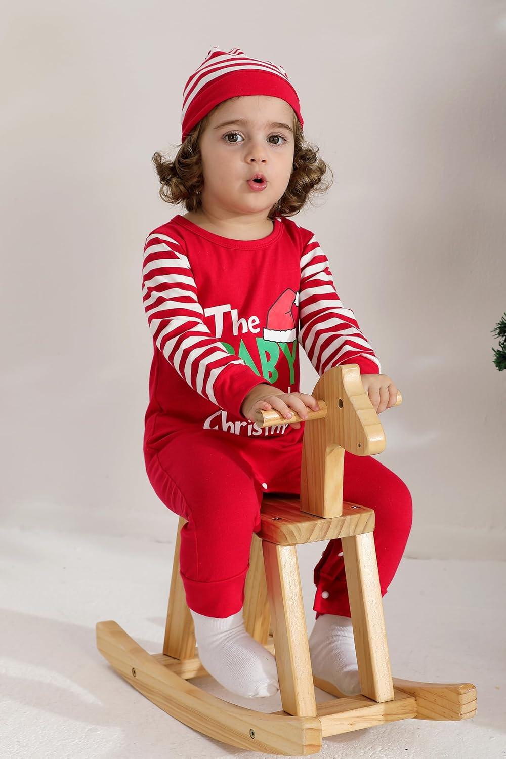 Get up to 50% off on YOUNGER TREE Baby Boy Christmas Outfits Infant Boy Santa Long Sleeve Jumpsuit Romper First Xmas Christmas Outfits with Hat(Red Stripes) styles during our spring sale event.