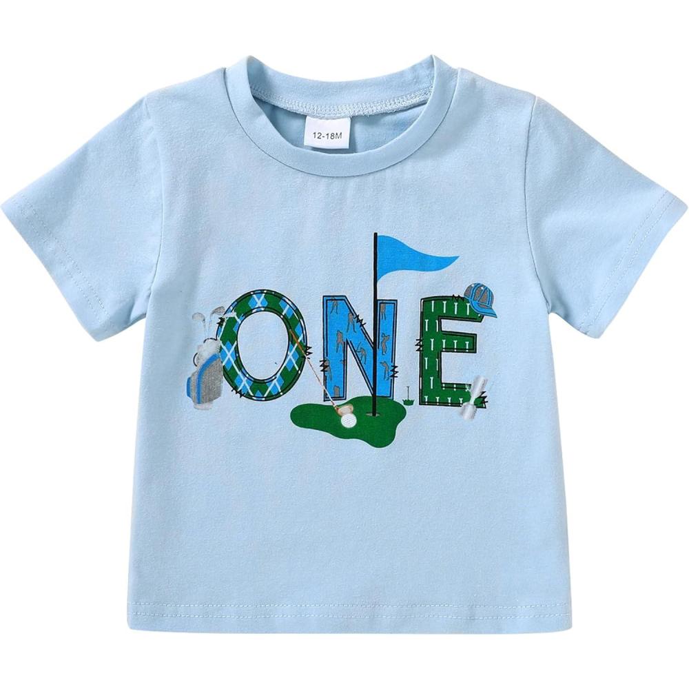 YOUNGER TREE Baby Boy Clothes 1 Year Old Clothes First Birthday Outfit Boy Short Sleeve T-Shirt Infant Summer Outfits(Hole in One)