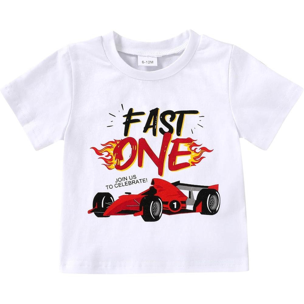 YOUNGER TREE Baby Boy Clothes 1 Year Old Clothes First Birthday Outfit Boy Short Sleeve T-Shirt Infant Summer Outfits(Racing Car Fast One)