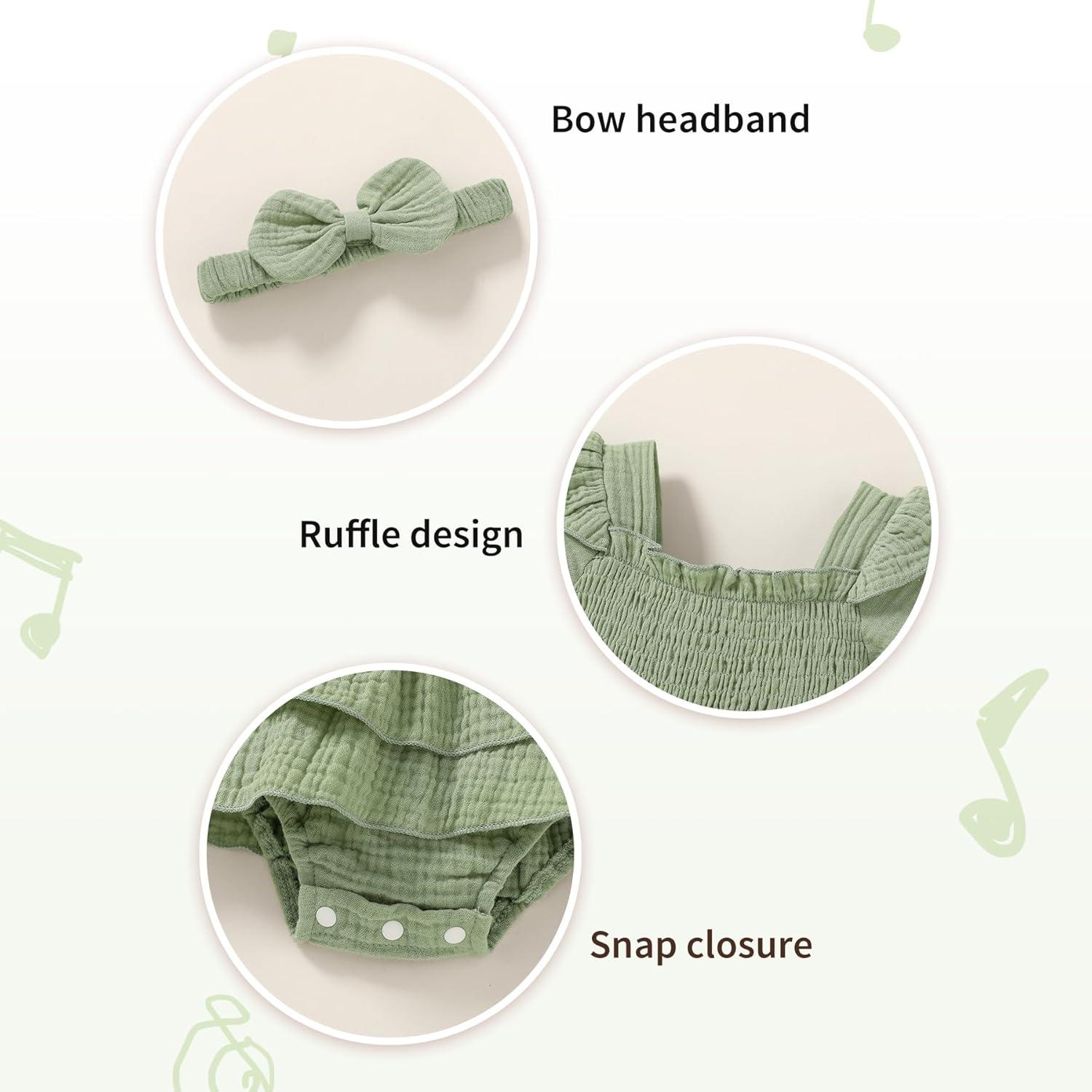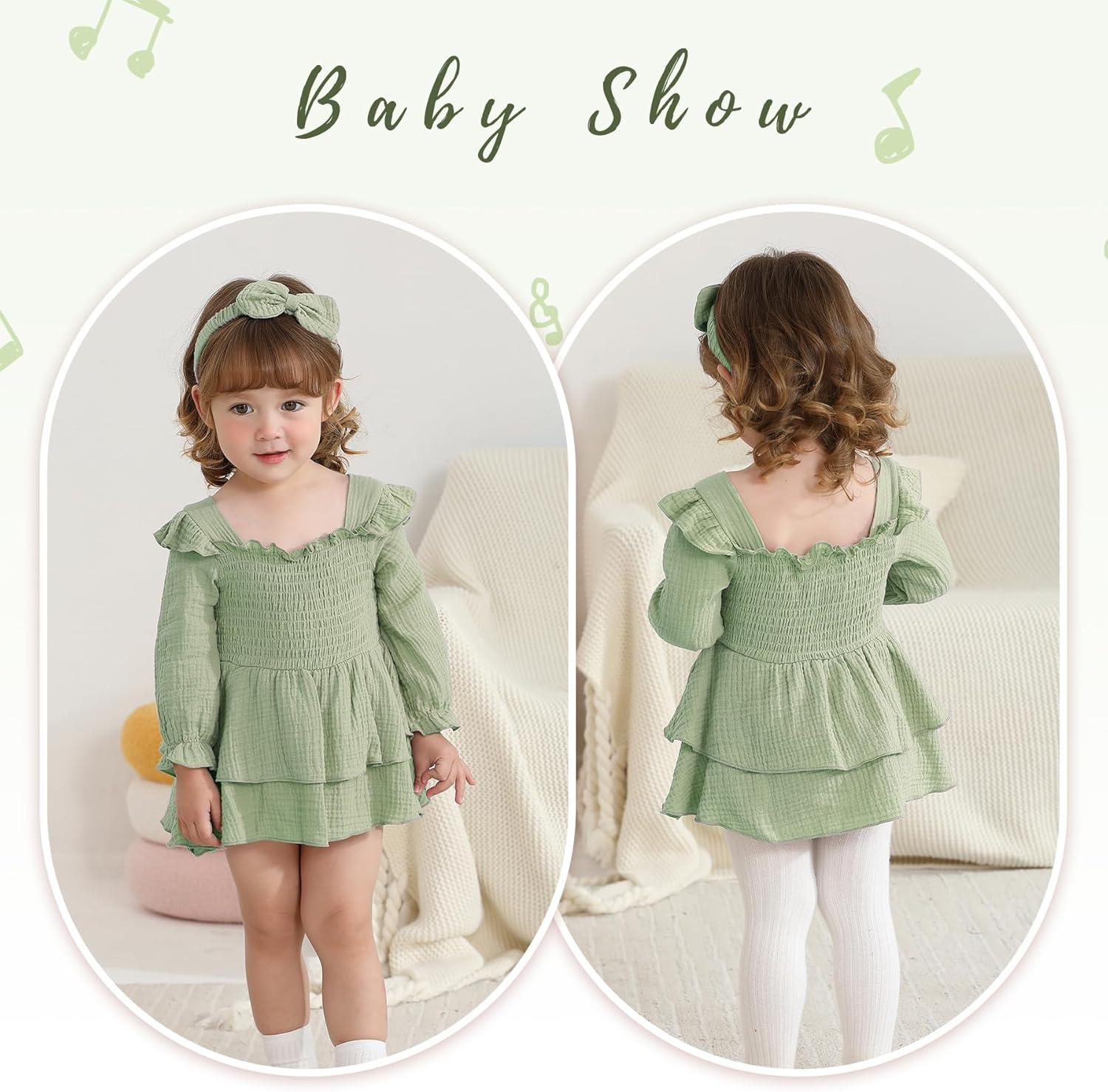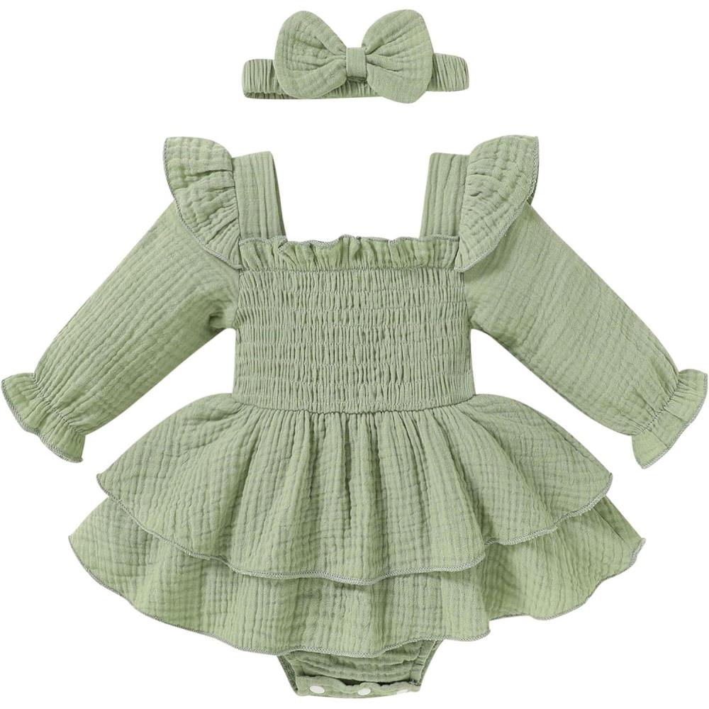 YOUNGER TREE Baby Girl Fall Clothes Infant Long Sleeve Ruffle Romper Dress with Headband Cute Toddler Winter Outfits(Light Green)