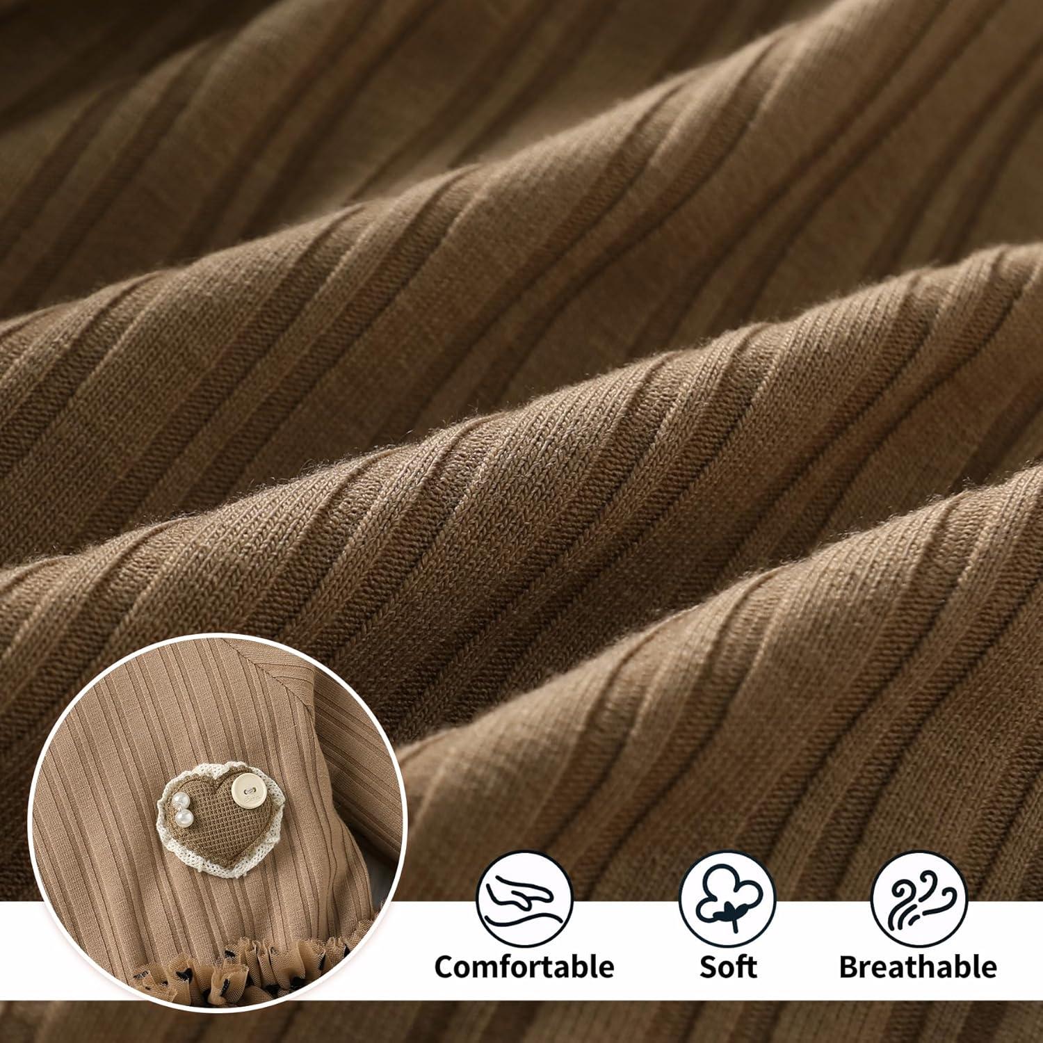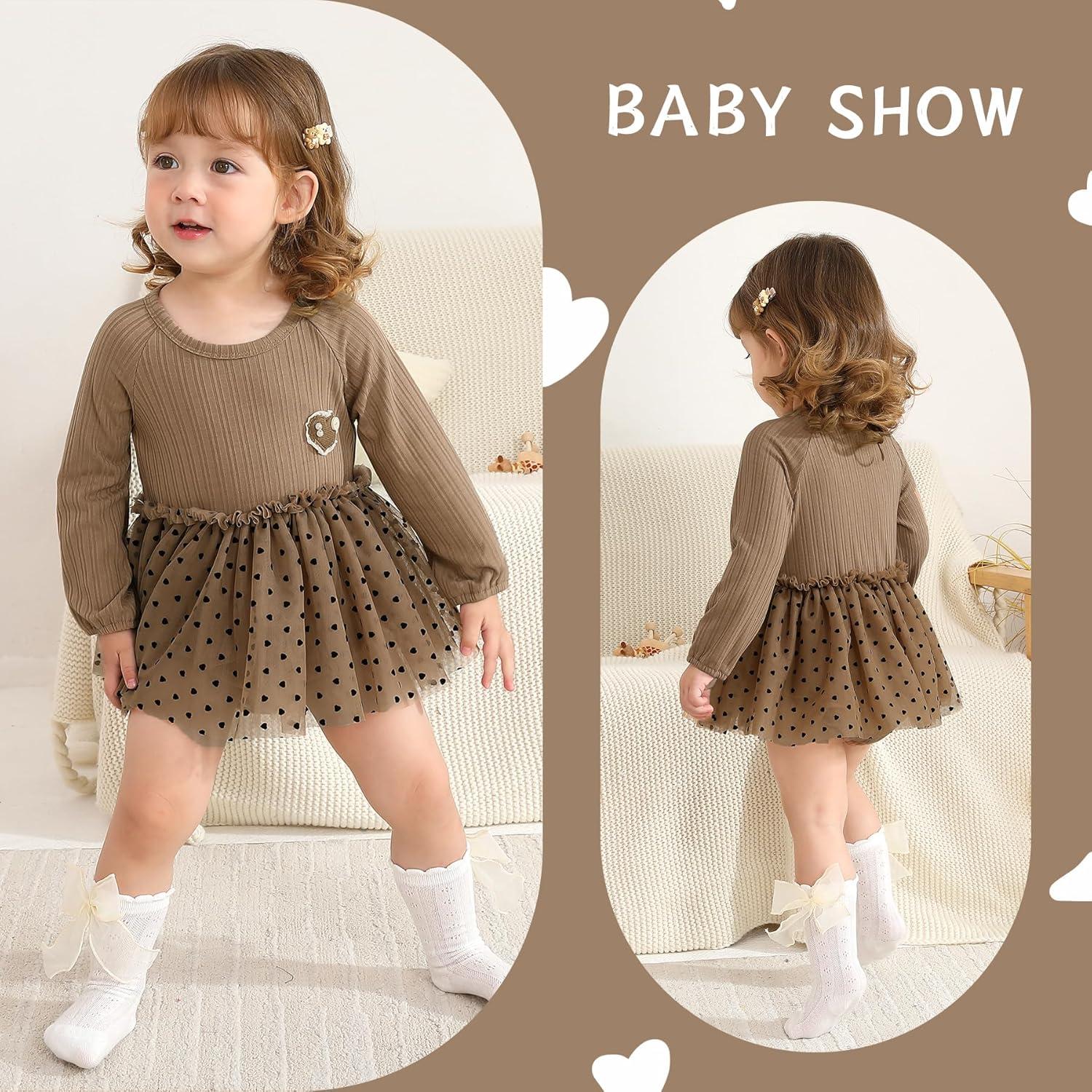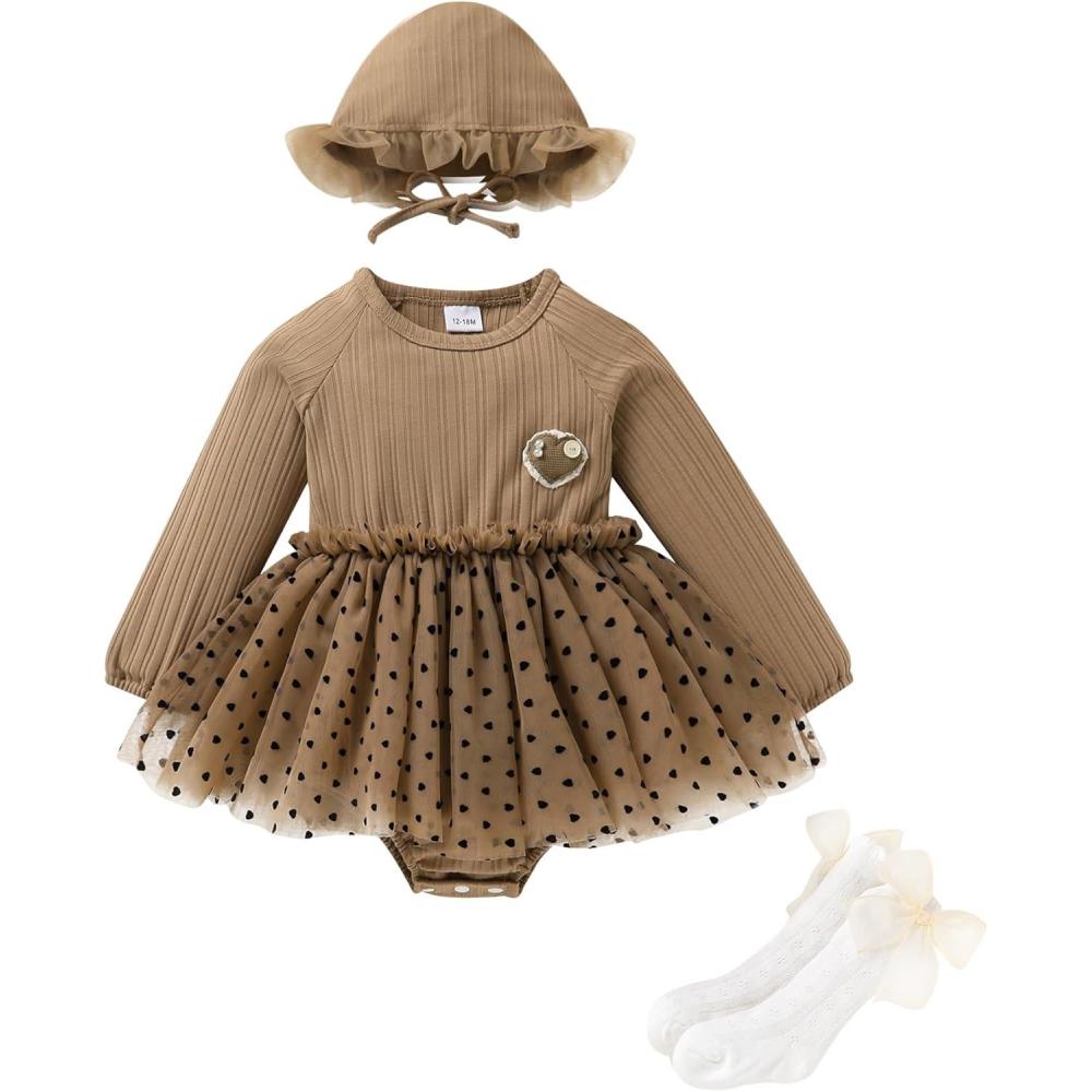 YOUNGER TREE Newborn Baby Girl Romper Dress Outfits Long Sleeve Floral Tutu Bodysuit with Leggings Hat Infant Fall Clothes(Brown)