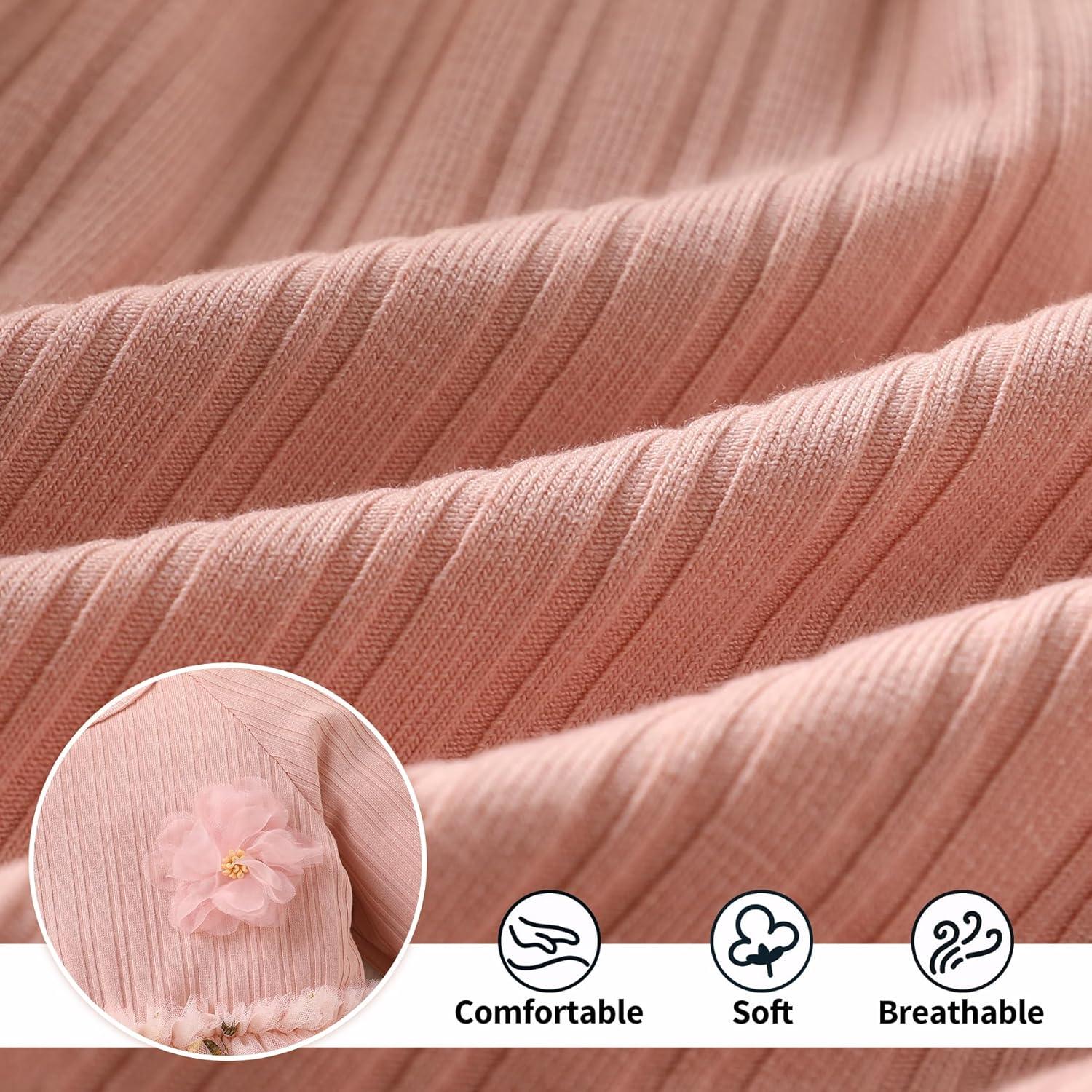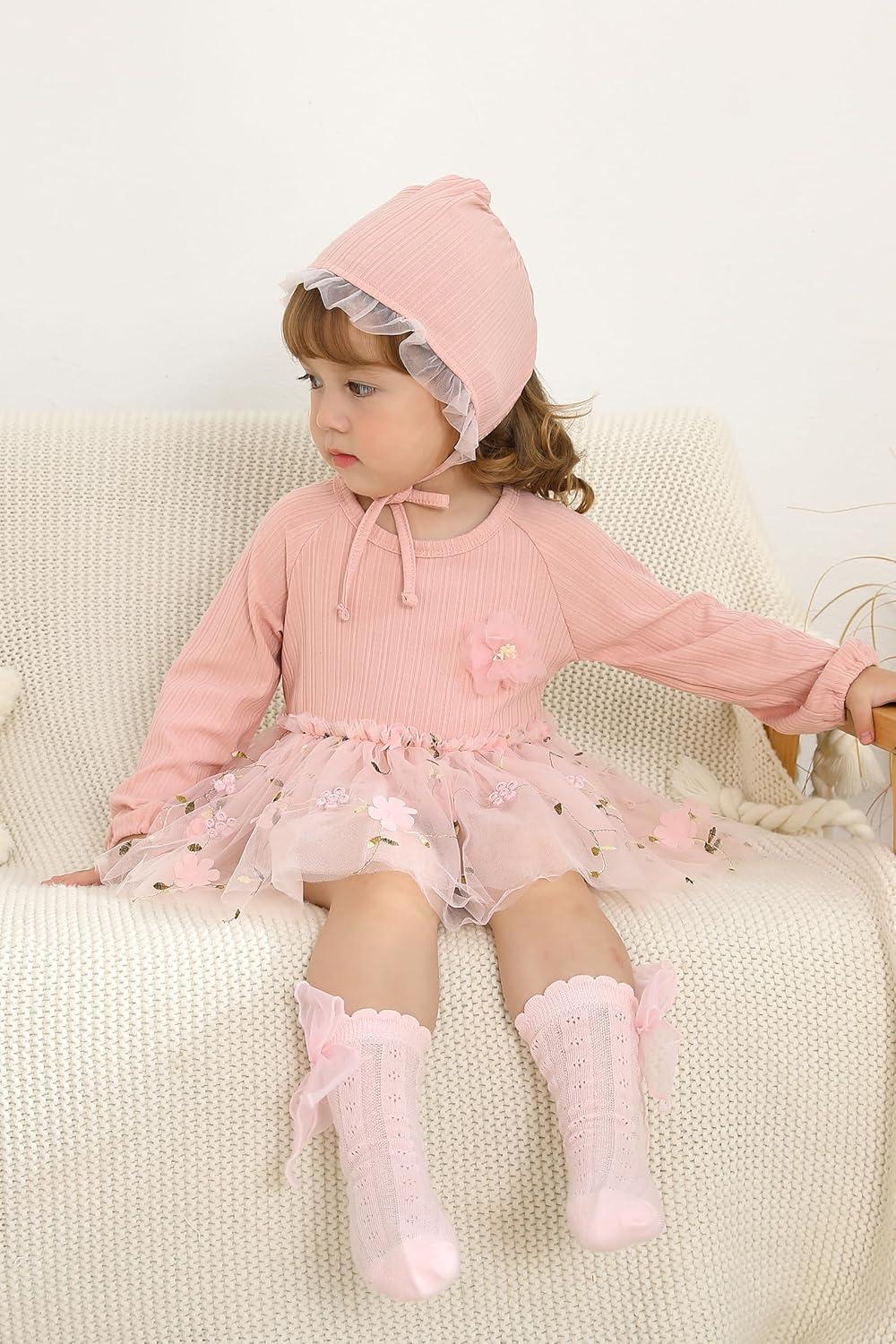 YOUNGER TREE Newborn Baby Girl Romper Dress Outfits Long Sleeve Floral Tutu Bodysuit with Leggings Hat Infant Fall Clothes(Pink Floral)
