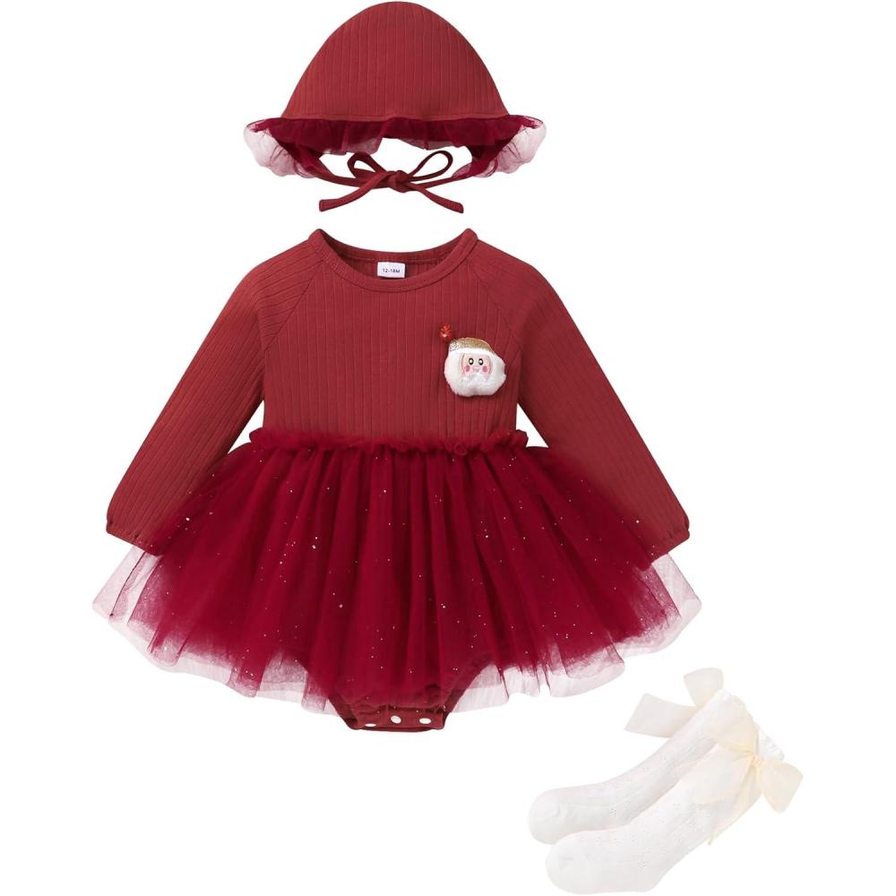 YOUNGER TREE Newborn Baby Girl Romper Dress Outfits Long Sleeve Floral Tutu Bodysuit with Leggings Hat Infant Fall Clothes(Red)