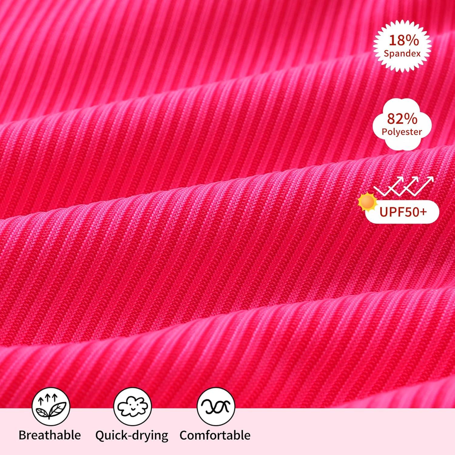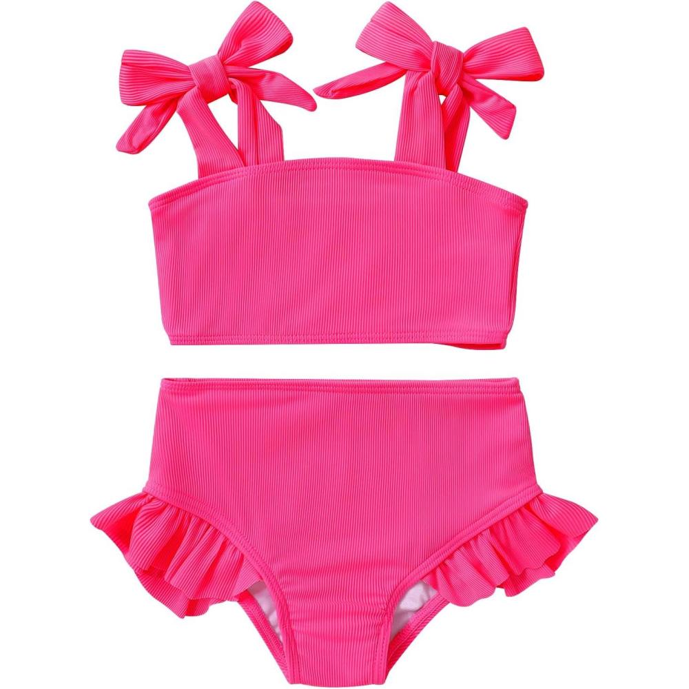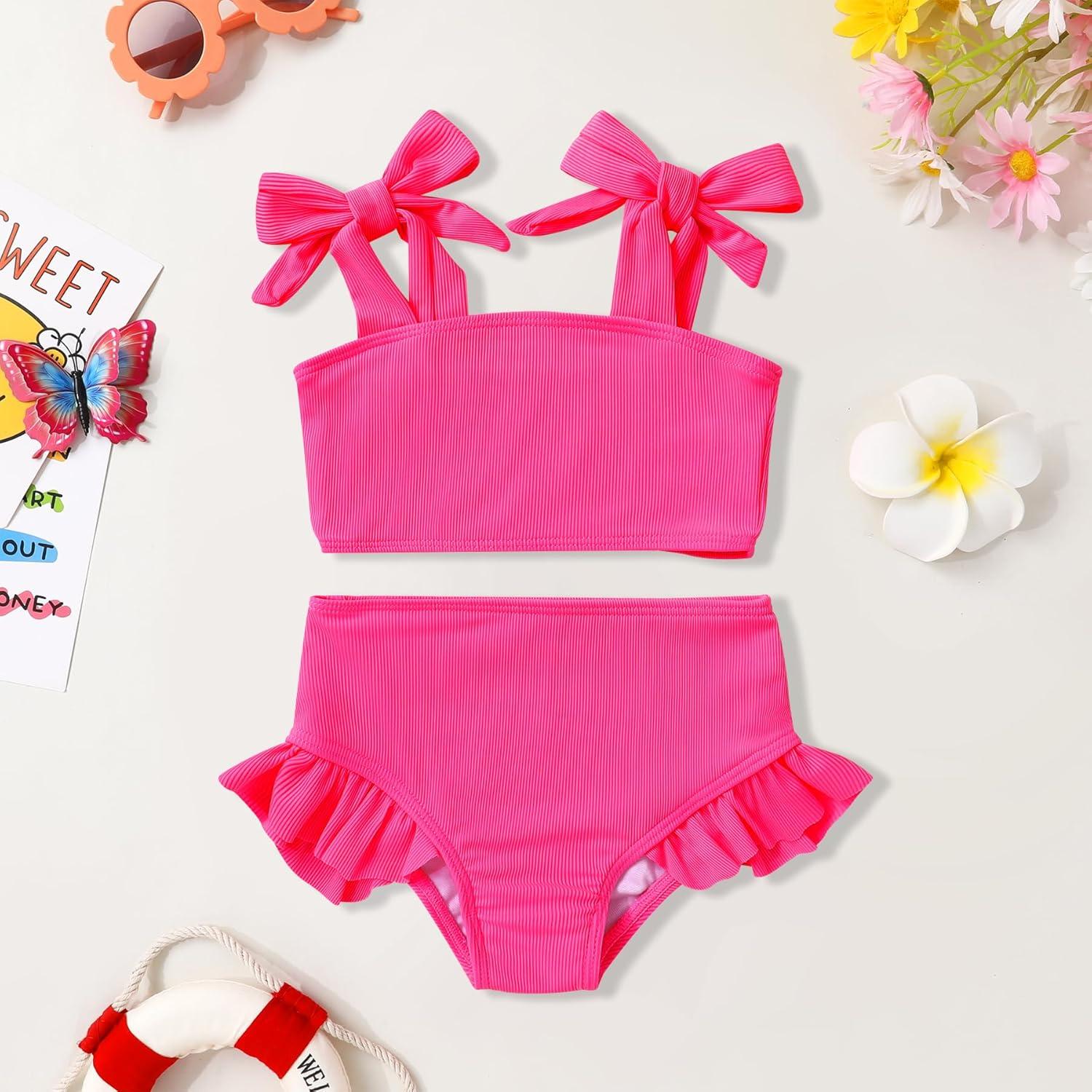 YOUNGER TREE Toddler Baby Girls Swimsuit Two Piece Solid Color Stripe Swimwear Summer Beach Bikini Bathing Suit(Rose Red)