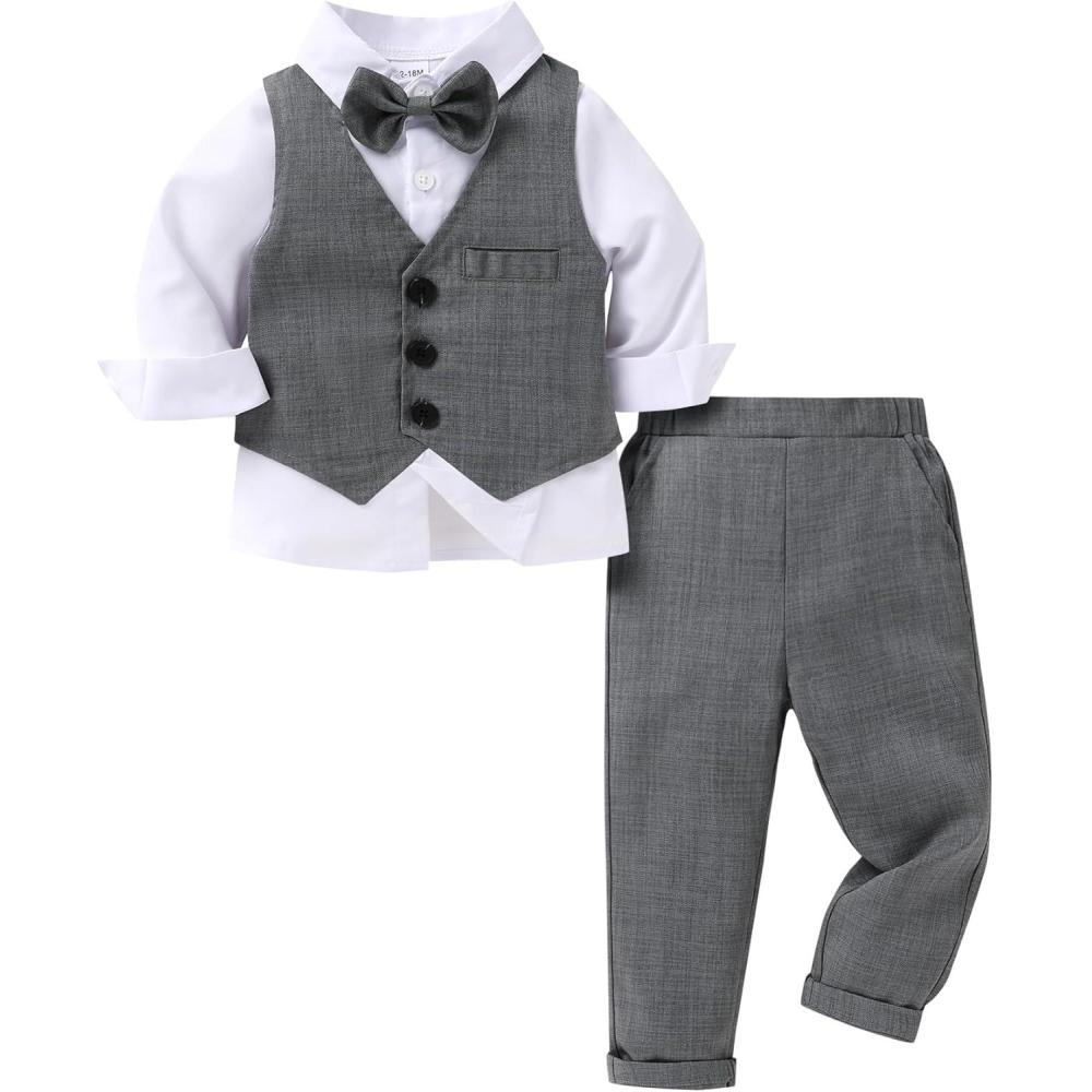 YOUNGER TREE Toddler Boy Clothes Suit Gentleman Wedding Outfits Baby Formal Dress 4-Piece Set(Grey)