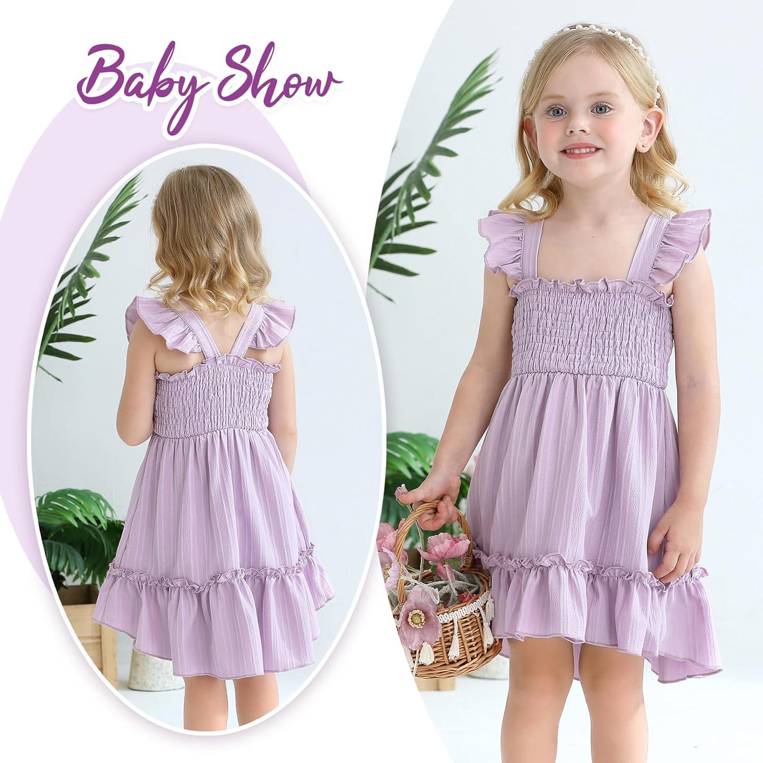 Get more for your money with our exclusive bundle deals on YOUNGER TREE Toddler Dress Girls Summer Ruffle Sleeveless Smocked Dresses Kids Beach Casual Sundress(Purple) and accessories.