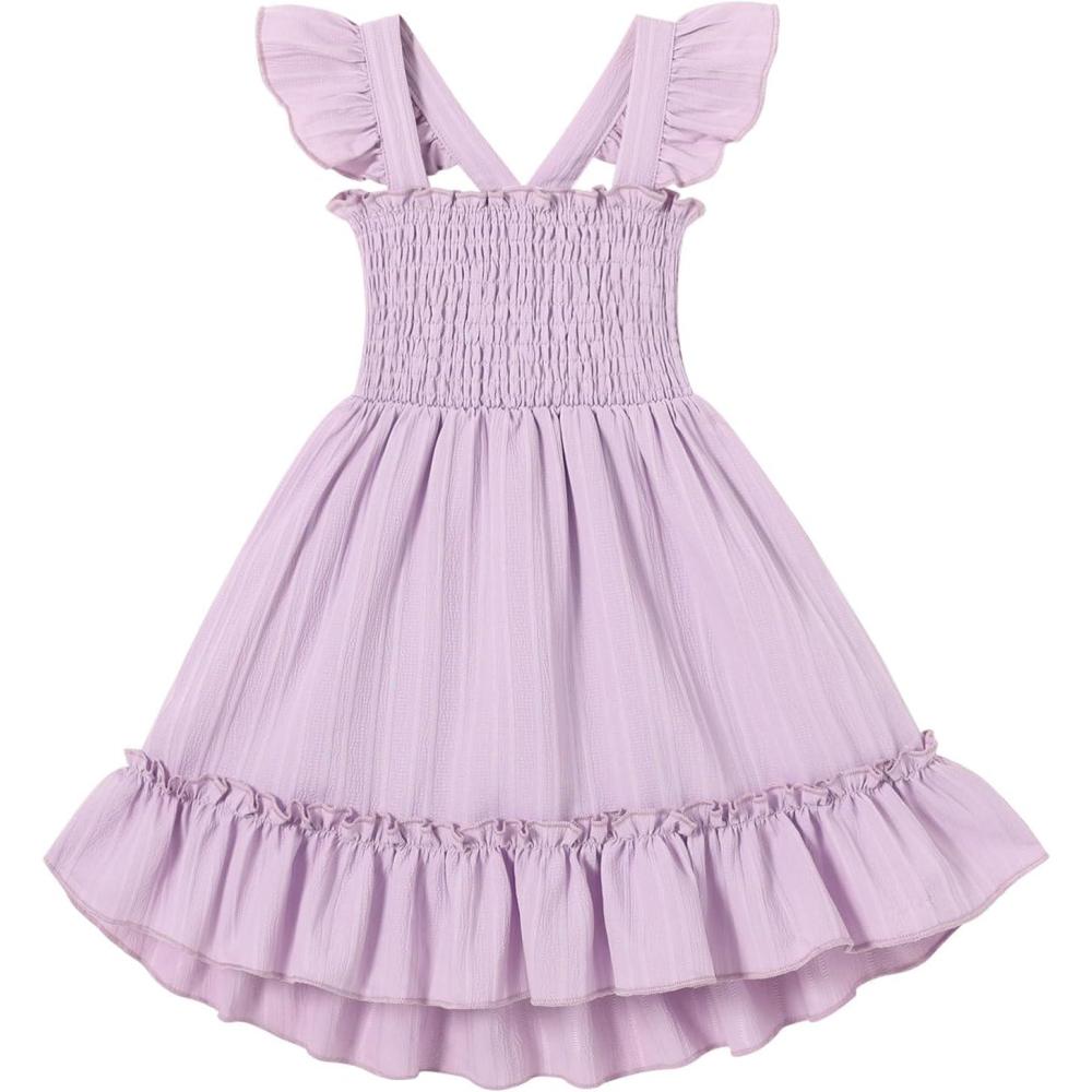 YOUNGER TREE Toddler Dress Girls Summer Ruffle Sleeveless Smocked Dresses Kids Beach Casual Sundress(Purple)